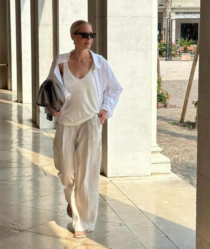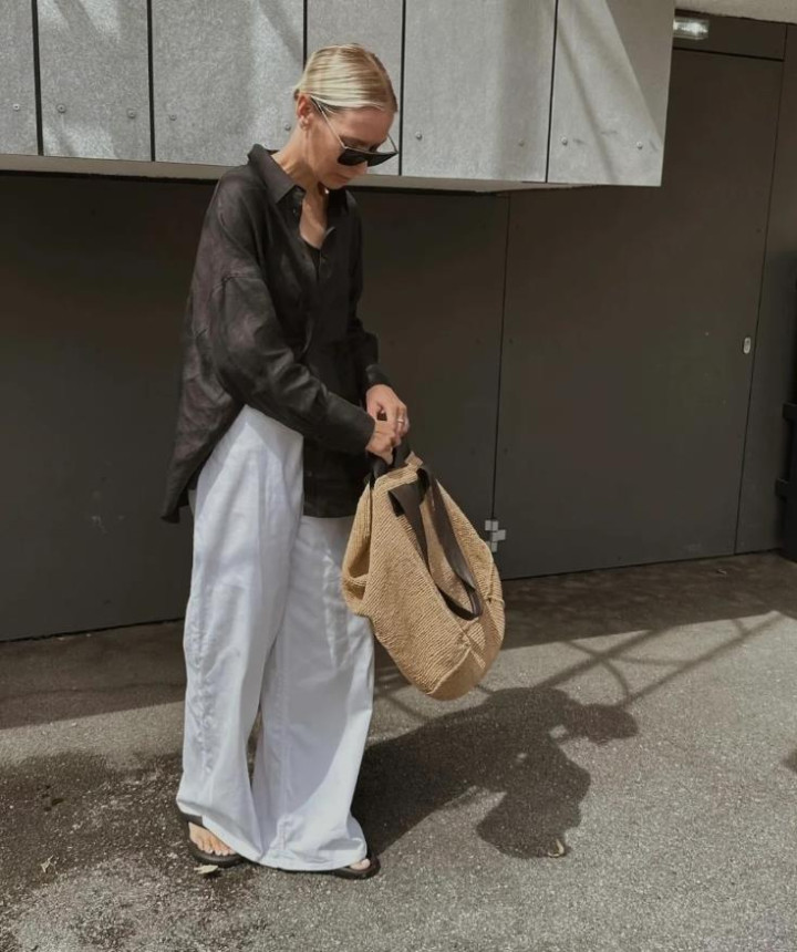 衬衫这种单品,本身是干练与气质的代表,但它一旦与宽松随性的阔腿裤组合在一起后,就会显得既气质又随性了。